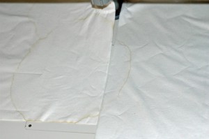 ホースを引っ張り出して戻すと、たまに水受けからホースが外れて水が滴り、汚れ防止にと敷いておいた紙に水がしみた後が!!